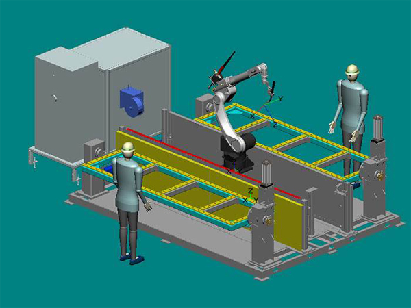 布局设计包括机器人选用,人机系统配置,作业对象的物流路线,电、液、气系统走线,操作箱、电器柜的位置以及维护修理和安全设施配置等内容。